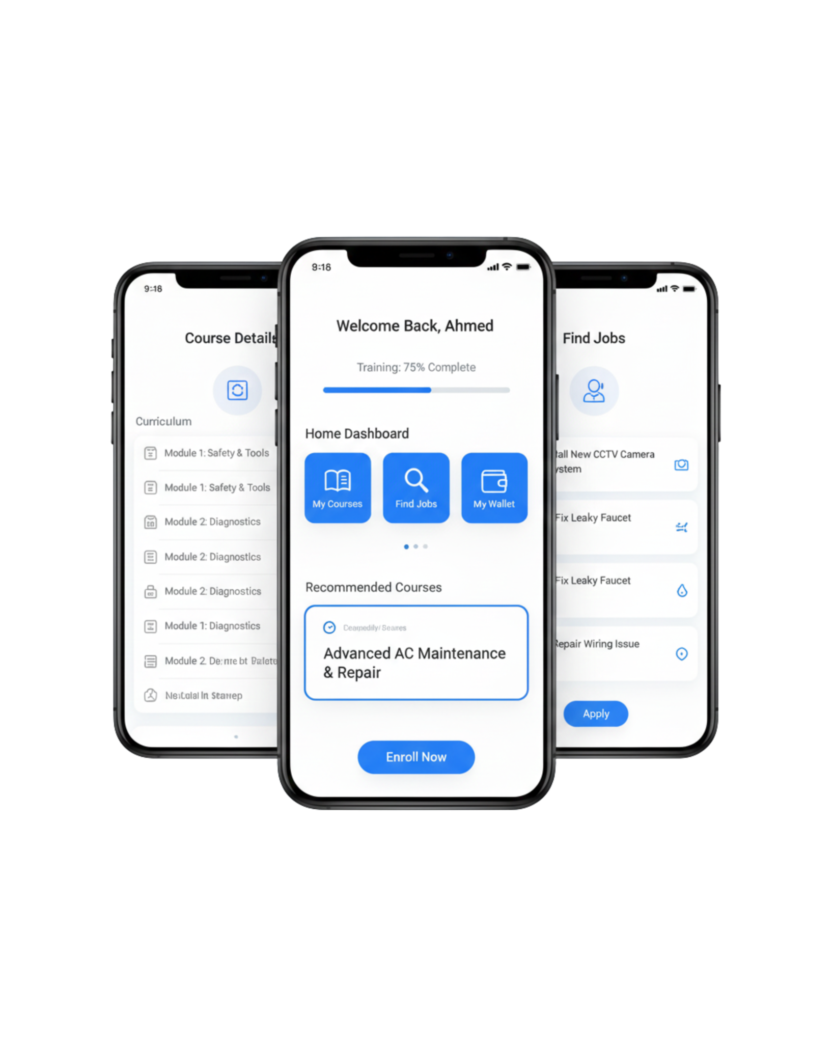KarobarLink connects skilled individuals with real work opportunities through training, certification, and a trusted service network — starting with electricians, plumbers, AC technicians, and other essential trades.